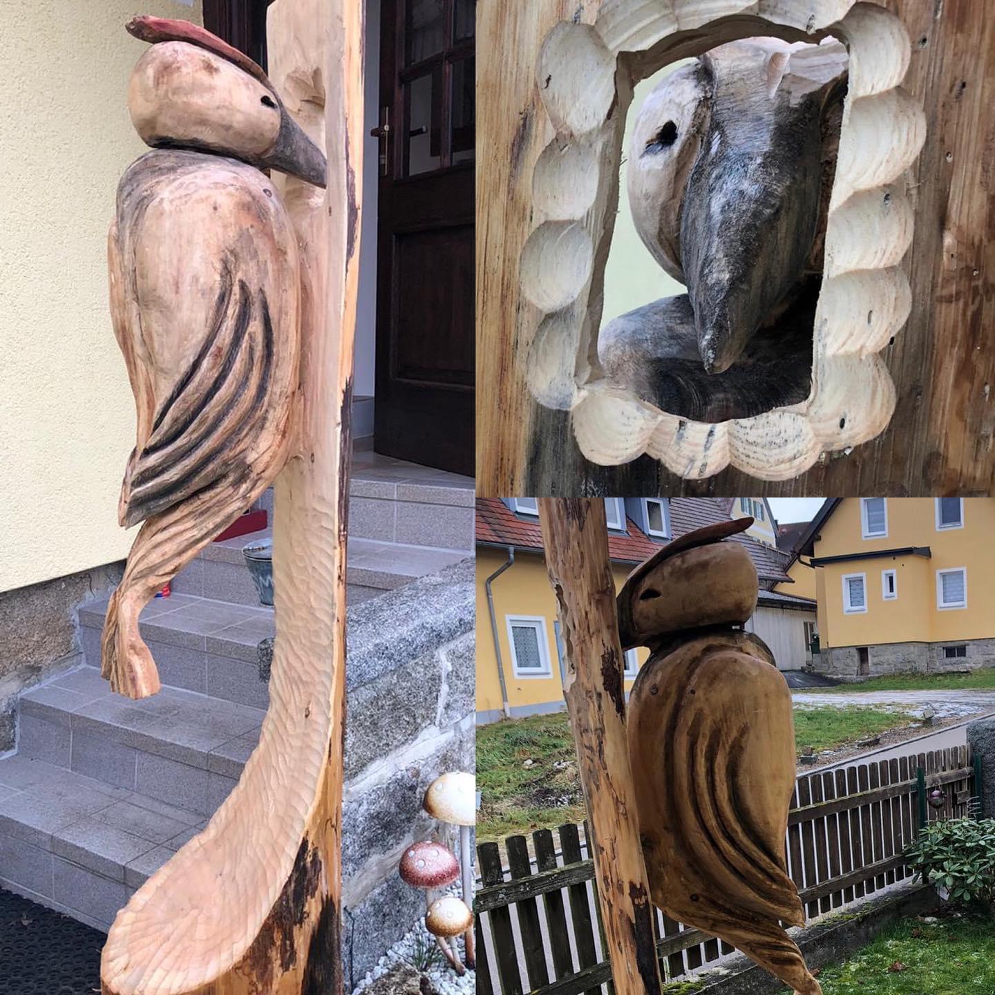 Specht aus einem Baumstamm